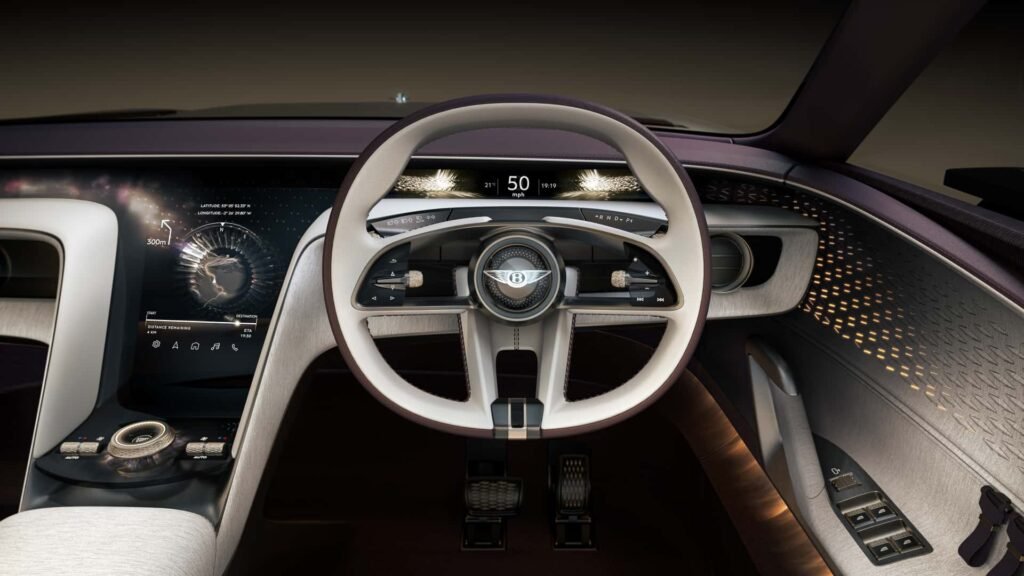 In the driver’s seat, a newly reimagined steering wheel and high-resolution digital cluster frame the experience. Unlike many futuristic EVs, Bentley’s approach doesn’t strip away luxury—it evolves it.