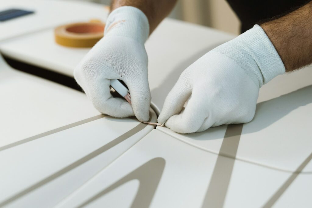 Polished aluminum elements glisten softly under ambient lighting, while bespoke embroidery adds a signature touch exclusive to this commission. The name “La Perle Rare” appears not as branding, but as a personal hallmark — discreet, refined, intentional.