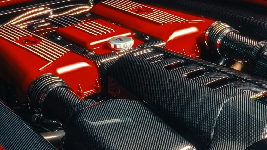 At the heart of the 355 by Evoluto is a comprehensively rebuilt 3.5-litre naturally aspirated V8. Reworked with modern precision engineering, upgraded internal components, bespoke engine management, and a freer-flowing exhaust system, output rises to approximately 420 horsepower.