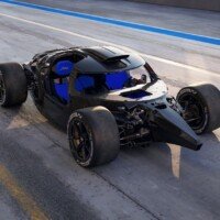 Every surface of the Bolide is functional. The carbon-fibre body is shaped purely by airflow, with aerodynamic configurations capable of achieving extreme downforce or low-drag efficiency. The car sits exceptionally low—1,047 mm in height—and features aggressive front and rear overhangs that emphasise its racing intent.