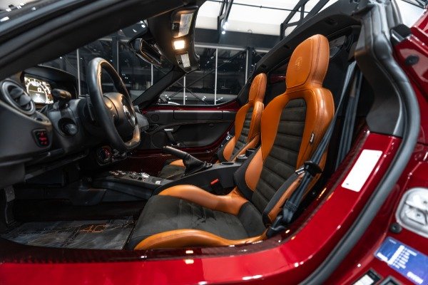 With only 1,757 miles on the odometer and recently serviced, this pristine example combines breathtaking design with a race-tuned chassis and extensive use of carbon fiber, including a visible red carbon monocoque. Enhanced by factory options such as an Akrapovic dual-mode exhaust, serialized Tributo badging, Italian flag carbon mirrors, and gold 5-hole wheels, this 4C is more than a car — it’s a rolling tribute to Alfa Romeo’s motorsport heritage and timeless Italian artistry.