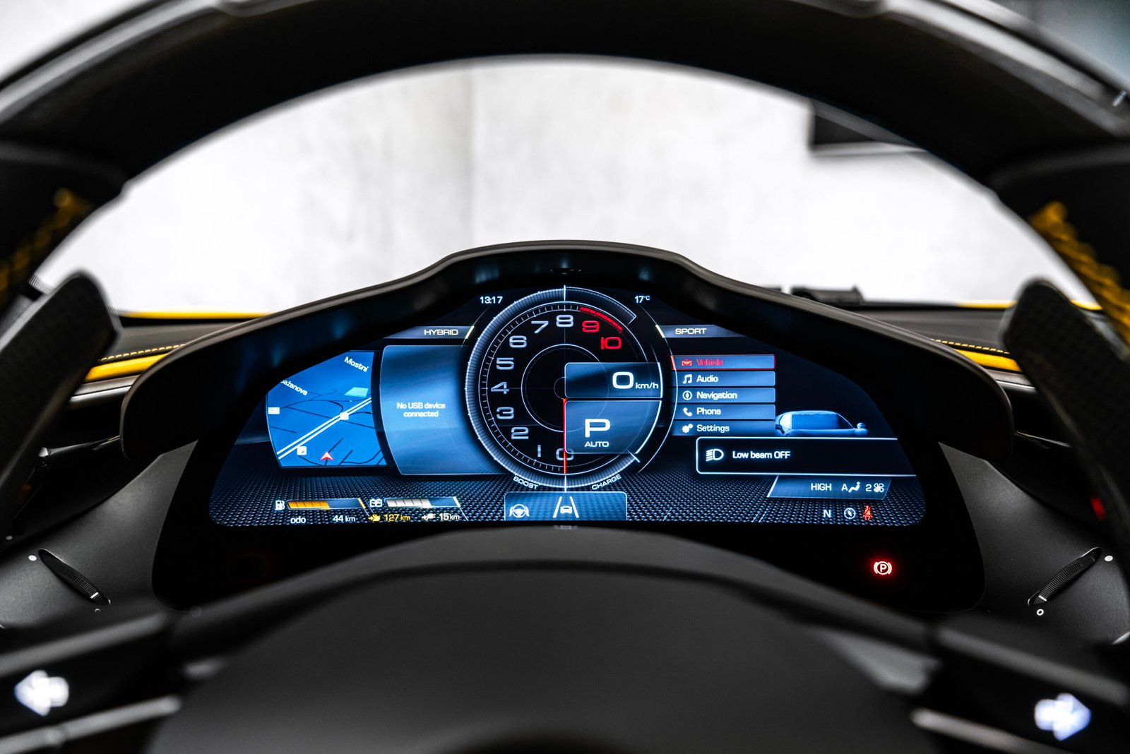Presented in a stunning two-tone exterior and enhanced with yellow brake calipers and forged 20” painted wheels, the visual impact is immediate. Inside, the cabin features an exceptional configuration with extrarange Alcantara in Giallo Ravello, coloured stitching, specially designed seats, and a carbon fibre steering wheel with LEDs. Advanced features include MyFerrari Connect, electrochromic mirrors, adaptive front lighting, front lift system, and full driver assistance suite.