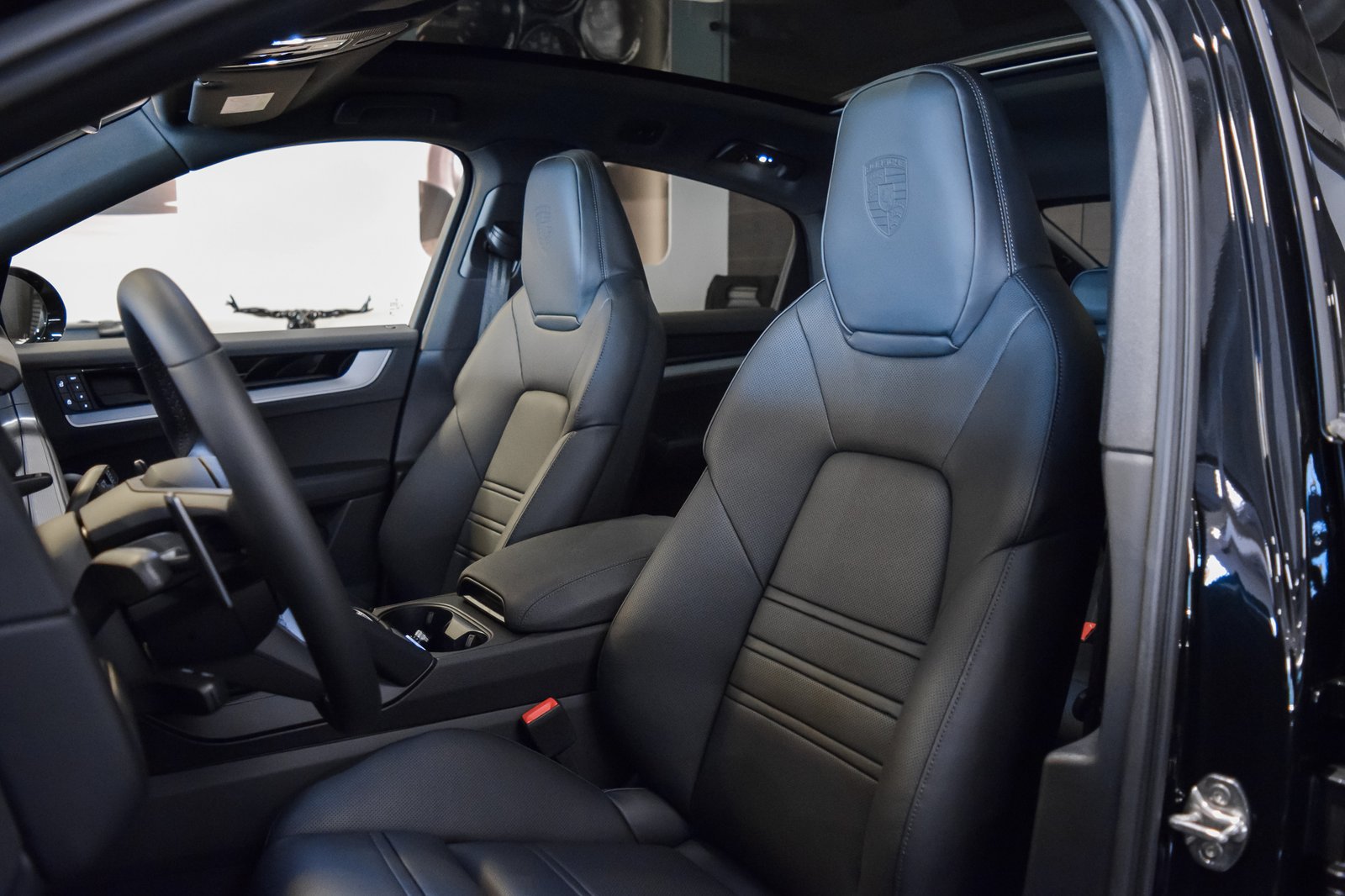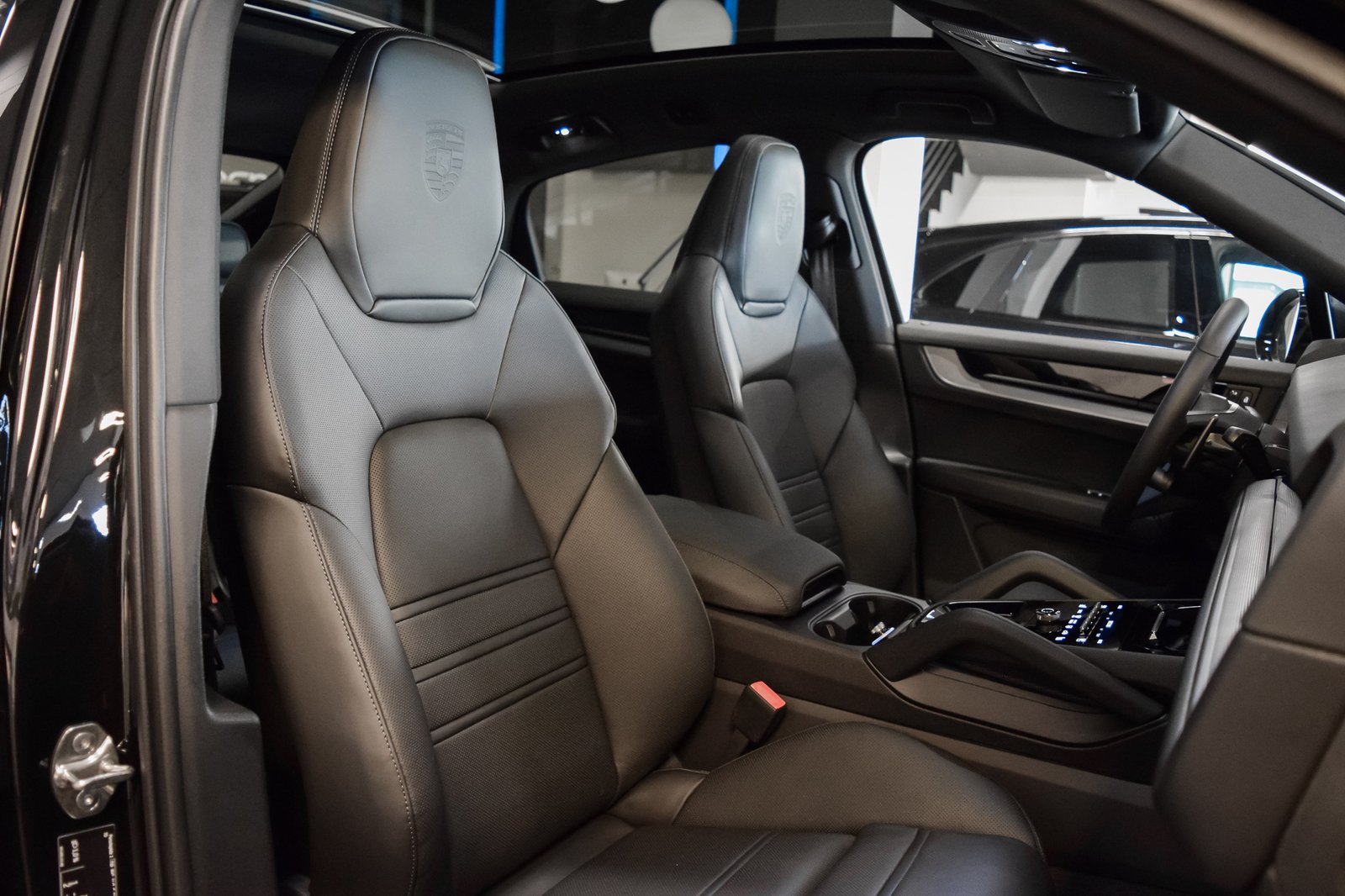 This 2025 Porsche Cayenne Coupé E-Hybrid combines dynamic performance with luxurious design and cutting-edge efficiency. With only 3,800 km, it comes in Chromite Black Metallic with the SportDesign exterior package in high-gloss black, 22" RS Spyder Design wheels, and a sleek, debadged rear with dark bronze sport exhaust outlets.