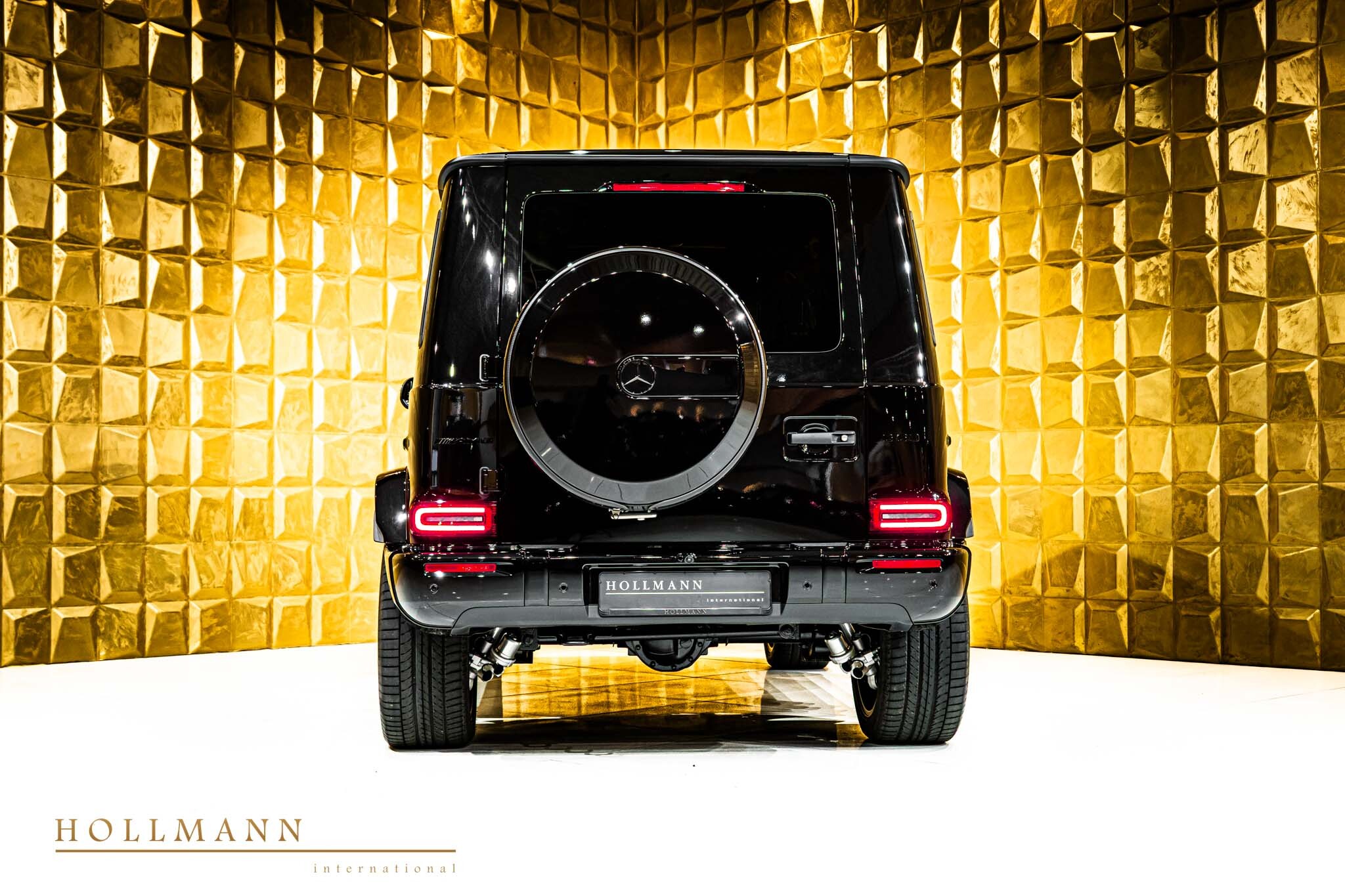 The exterior is complemented by 22-inch AMG forged wheels, perfectly filling the widened arches and emphasizing the G 63’s muscular stance. Advanced suspension technology, including AMG Active Ride Control, ensures remarkable stability and comfort despite the vehicle’s formidable performance capabilities.
