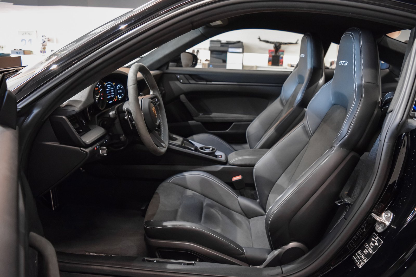 Inside, the cabin is a driver-centric environment crafted from Alcantara, carbon fiber, and premium leather. Sports seats, GT3 steering wheel, and the Porsche Communication Management system combine functionality with sophistication. The minimalist approach reflects performance purity, free from distractions yet filled with craftsmanship.