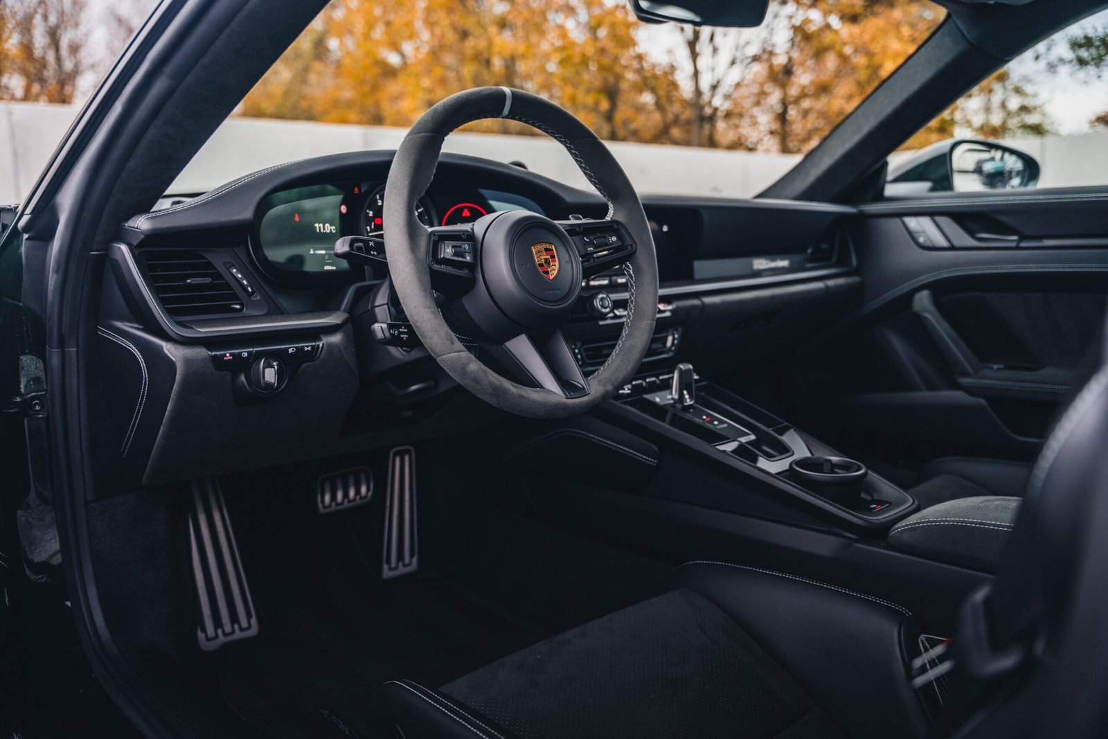 Inside, the cabin is configured with the Race-Tex interior package, extensively trimmed with leather and finished with Shade Green stitching — a subtle yet deliberate nod to the exterior tone. Full carbon-fibre bucket seats anchor the driver and passenger in true motorsport fashion, reinforcing the Dakar’s dual identity as both performance machine and collector’s object.