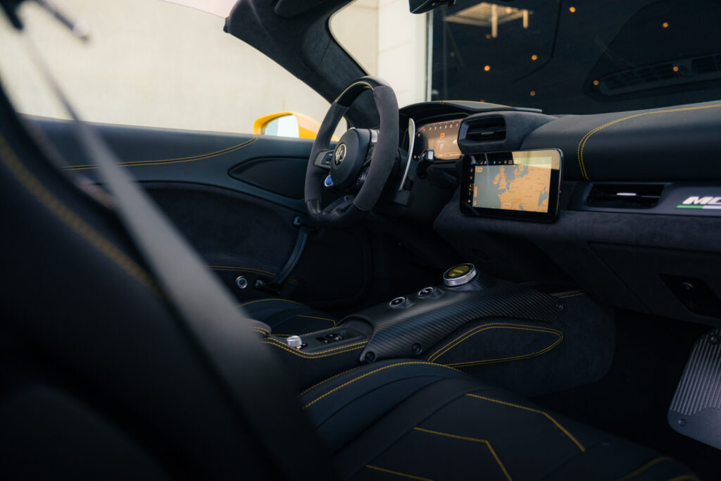 Finished in Giallo Genio, this example highlights the car’s sculpted lines and aerodynamic purity. Unlike many supercars, the MC20 relies on underbody aerodynamics rather than large external wings, resulting in a clean and elegant silhouette.