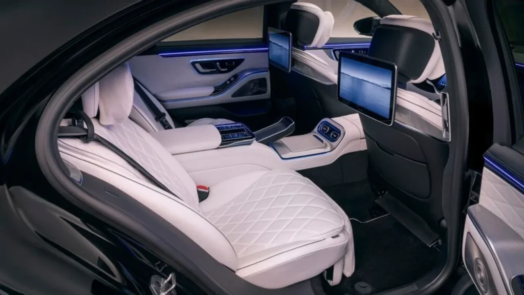 Rear-seat accommodations further reinforce the S-Class’s role as the definitive chauffeur-driven luxury sedan, offering an atmosphere closer to a private lounge than a traditional vehicle cabin.